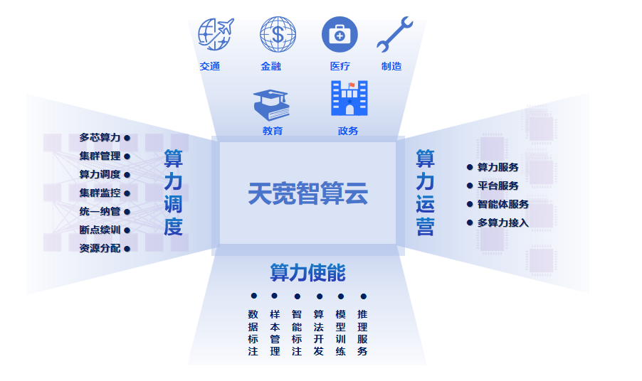 天寬智算云聚焦于為政企客戶與科研機(jī)構(gòu)構(gòu)建智能化轉(zhuǎn)型底座,通過提供“端到端一站式AI服務(wù)”,打通從底層算力資源供給到上層場(chǎng)景落地的全價(jià)值鏈。以高效、安全、開放的AI基礎(chǔ)設(shè)施(AI Infra)為核心,提供包括高性能AI算力、模型訓(xùn)練與推理加速、MAAS服務(wù)解決方案、行業(yè)AI咨詢、行業(yè)模型適配、智能體構(gòu)建服務(wù)在內(nèi)的一站式智能計(jì)算服務(wù)平臺(tái),并通過行業(yè)級(jí)解決方案實(shí)現(xiàn)“場(chǎng)景化精準(zhǔn)賦能”。